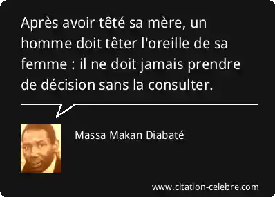 Après avoir têté sa mère, un homme doit têter l'oreille de sa femme : il ne doit jamais prendre de décision sans la consulter.