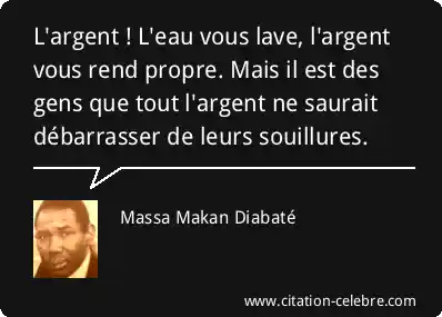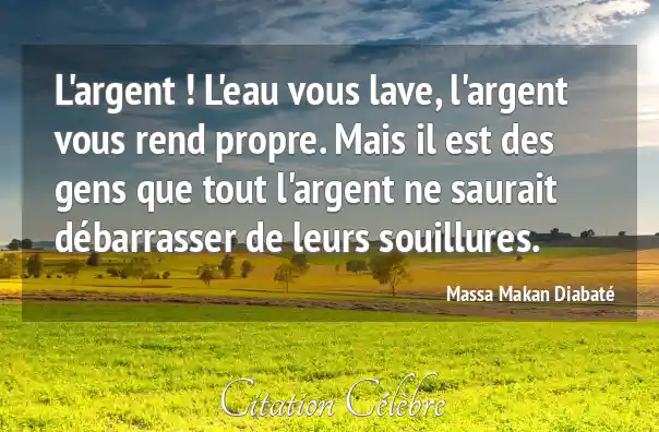 L'argent ! L'eau vous lave, l'argent vous rend propre. Mais il est des gens que tout l'argent ne saurait débarrasser de leurs souillures.