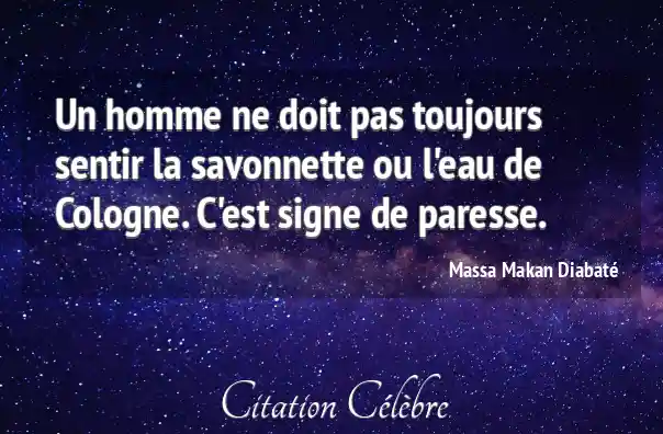 Un homme ne doit pas toujours sentir la savonnette ou l'eau de Cologne. C'est signe de paresse.