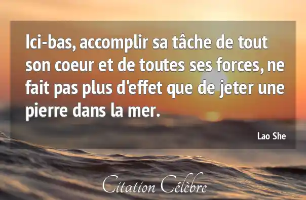 Citation Lao She coeur : Ici-bas, accomplir sa tâche de tout son coeur et de...