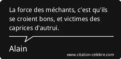 La force des méchants, c'est qu'ils se croient bons, et victimes des caprices d'autrui.