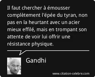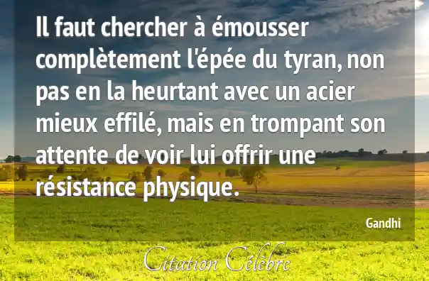 Il faut chercher à émousser complètement l'épée du tyran, non pas en la heurtant avec un acier mieux effilé, mais en trompant son attente de voir lui offrir une résistance physique.