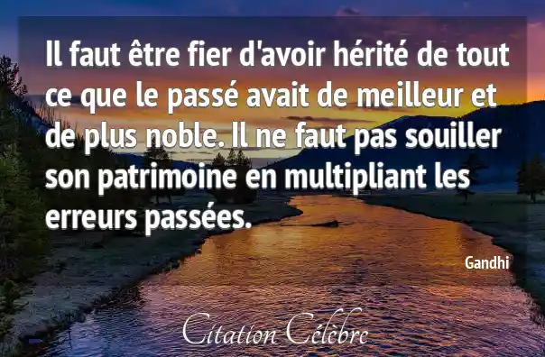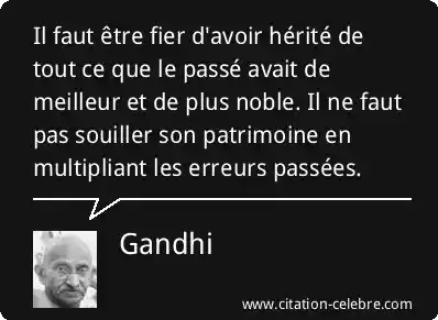 Il faut être fier d'avoir hérité de tout ce que le passé avait de meilleur et de plus noble. Il ne faut pas souiller son patrimoine en multipliant les erreurs passées.