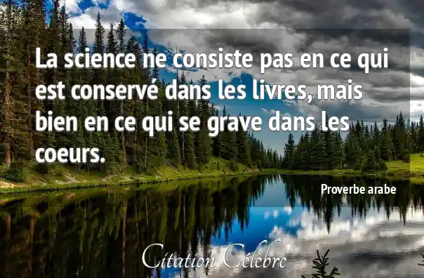La science ne consiste pas en ce qui est conservé dans les livres, mais bien en ce qui se grave dans les coeurs.