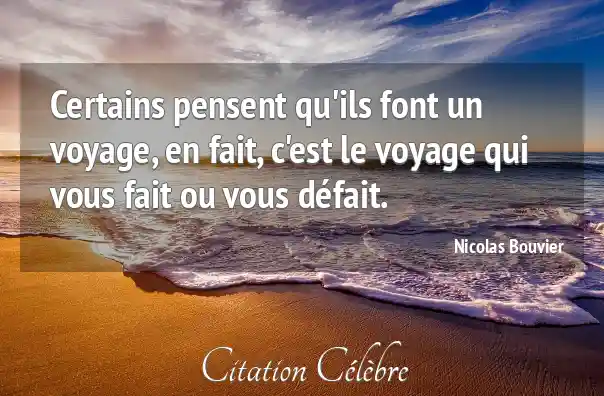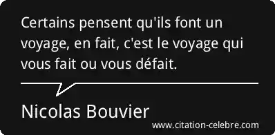 Certains pensent qu'ils font un voyage, en fait, c'est le voyage qui vous fait ou vous défait.