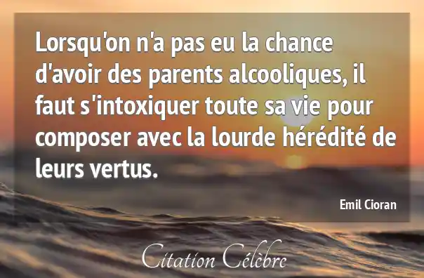 Lorsqu'on n'a pas eu la chance d'avoir des parents alcooliques, il faut s'intoxiquer toute sa vie pour composer avec la lourde hérédité de leurs vertus.