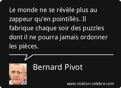 Le monde ne se révèle plus au zappeur qu'en pointillés. Il fabrique chaque soir des puzzles dont il ne pourra jamais ordonner les pièces.