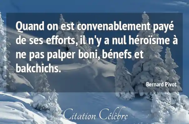 Quand on est convenablement payé de ses efforts, il n'y a nul héroïsme à ne pas palper boni, bénefs et bakchichs.