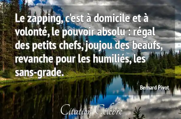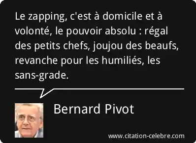Le zapping, c'est à domicile et à volonté, le pouvoir absolu : régal des petits chefs, joujou des beaufs, revanche pour les humiliés, les sans-grade.