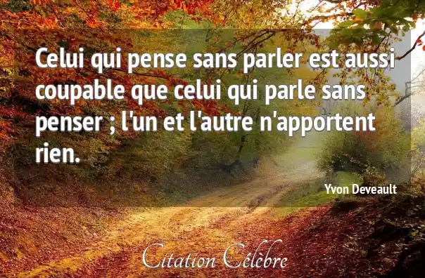 Citation Yvon Deveault rien : Celui qui pense sans parler est aussi coupable que celui...
