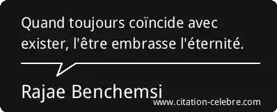 Quand toujours coïncide avec exister, l'être embrasse l'éternité.