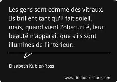 Les gens sont comme des vitraux. Ils brillent tant qu'il fait soleil, mais, quand vient l'obscurité, leur beauté n'apparaît que s'ils sont illuminés de l'intérieur.