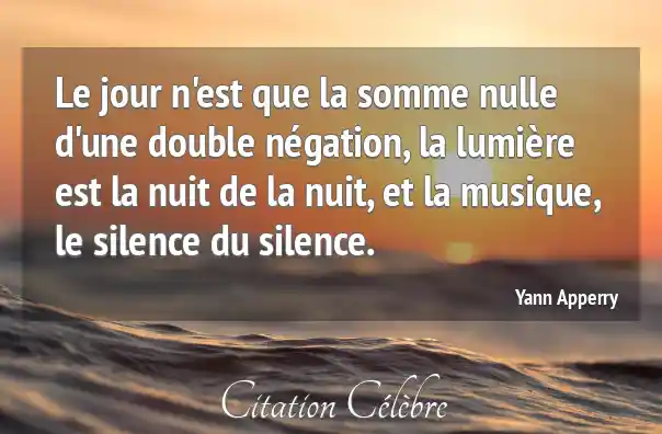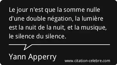 Le jour n'est que la somme nulle d'une double négation, la lumière est la nuit de la nuit, et la musique, le silence du silence.