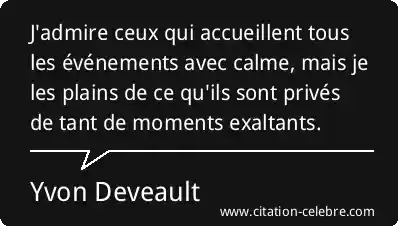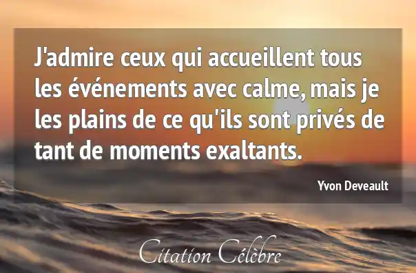 J'admire ceux qui accueillent tous les événements avec calme, mais je les plains de ce qu'ils sont privés de tant de moments exaltants.
