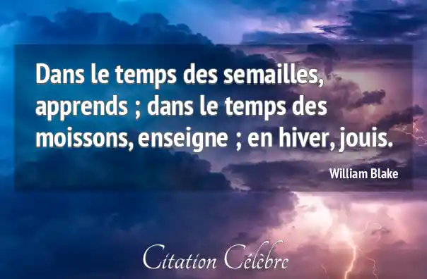 Dans le temps des semailles, apprends ; dans le temps des moissons, enseigne ; en hiver, jouis.