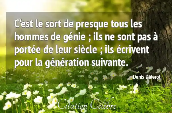C'est le sort de presque tous les hommes de génie ; ils ne sont pas à portée de leur siècle ; ils écrivent pour la génération suivante.