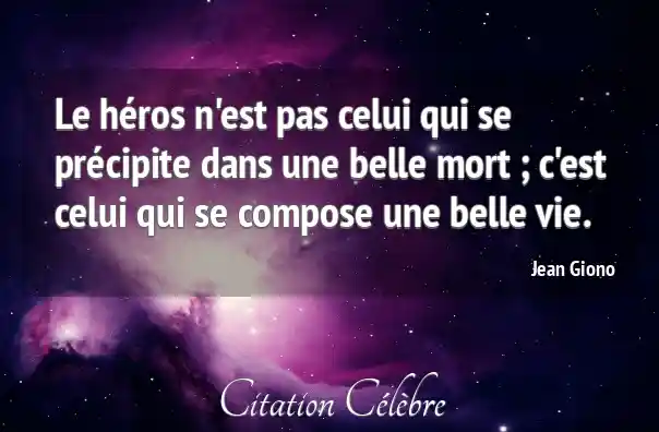 Le héros n'est pas celui qui se précipite dans une belle mort ; c'est celui qui se compose une belle vie.