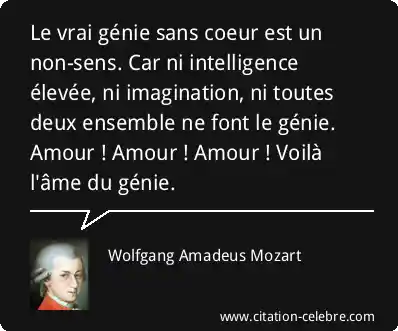 Le vrai génie sans coeur est un non-sens. Car ni intelligence élevée, ni imagination, ni toutes deux ensemble ne font le génie. Amour ! Amour ! Amour ! Voilà l'âme du génie.