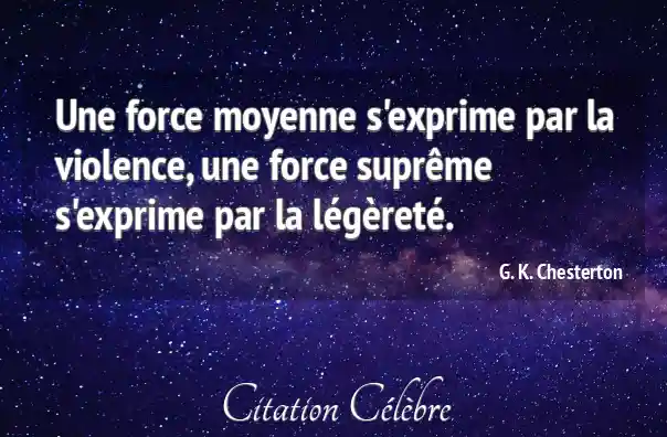 Une force moyenne s'exprime par la violence, une force suprême s'exprime par la légèreté.