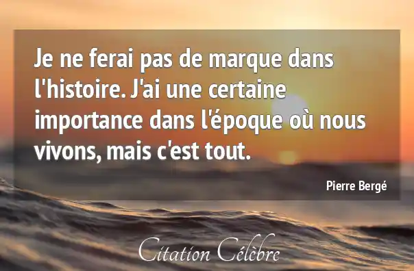 Je ne ferai pas de marque dans l'histoire. J'ai une certaine importance dans l'époque où nous vivons, mais c'est tout.