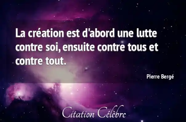 La création est d'abord une lutte contre soi, ensuite contre tous et contre tout.