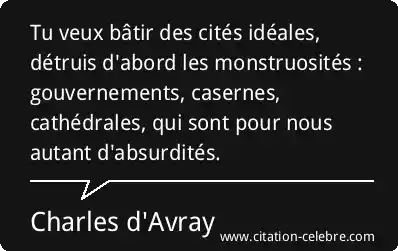 Tu veux bâtir des cités idéales, détruis d'abord les monstruosités : gouvernements, casernes, cathédrales, qui sont pour nous autant d'absurdités.