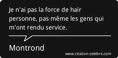 Je n'ai pas la force de haïr personne, pas même les gens qui m'ont rendu service.