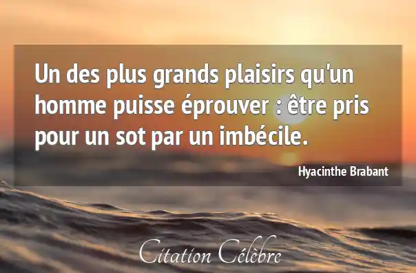 Un des plus grands plaisirs qu'un homme puisse éprouver : être pris pour un sot par un imbécile.