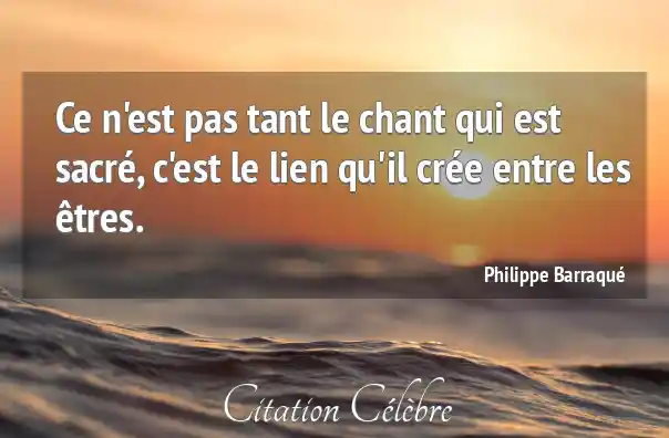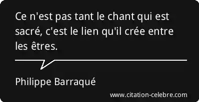 Citation Philippe Barraqué entre : Ce n'est pas tant le chant qui est sacré, c'est...