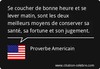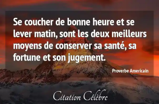 Se coucher de bonne heure et se lever matin, sont les deux meilleurs moyens de conserver sa santé, sa fortune et son jugement.