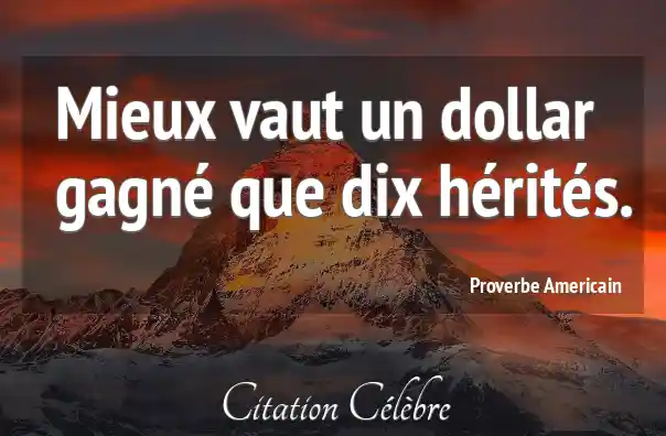 Mieux vaut un dollar gagné que dix hérités.