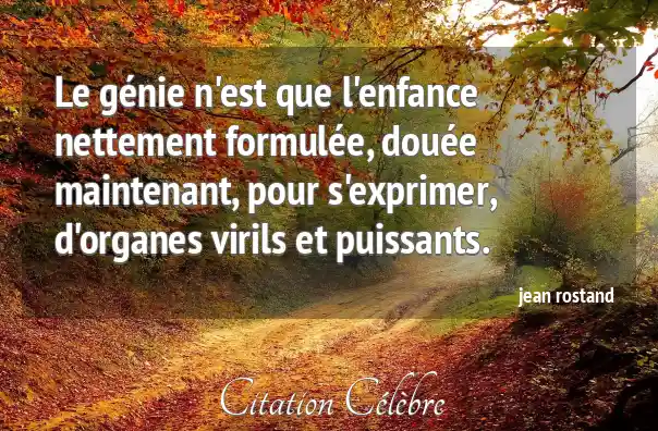 Le génie n'est que l'enfance nettement formulée, douée maintenant, pour s'exprimer, d'organes virils et puissants.