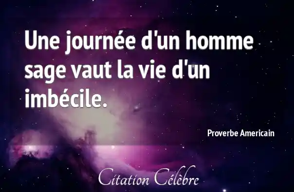 Une journée d'un homme sage vaut la vie d'un imbécile.