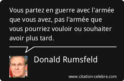 Vous partez en guerre avec l'armée que vous avez, pas l'armée que vous pourriez vouloir ou souhaiter avoir plus tard.