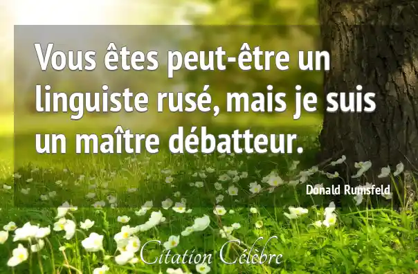 Vous êtes peut-être un linguiste rusé, mais je suis un maître débatteur.