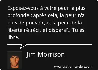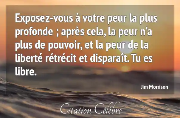 Exposez-vous à votre peur la plus profonde ; après cela, la peur n'a plus de pouvoir, et la peur de la liberté rétrécit et disparaît. Tu es libre.