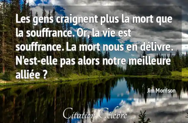 Les gens craignent plus la mort que la souffrance. Or, la vie est souffrance. La mort nous en délivre. N'est-elle pas alors notre meilleure alliée ?