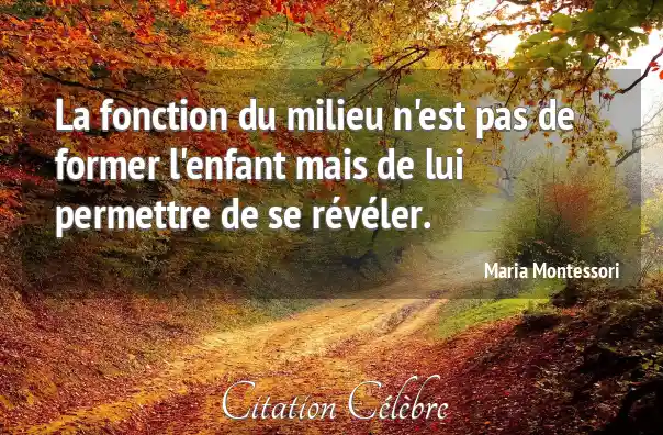 La fonction du milieu n'est pas de former l'enfant mais de lui permettre de se révéler.