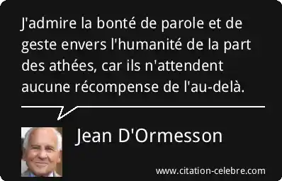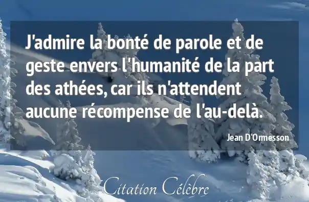 J'admire la bonté de parole et de geste envers l'humanité de la part des athées, car ils n'attendent aucune récompense de l'au-delà.