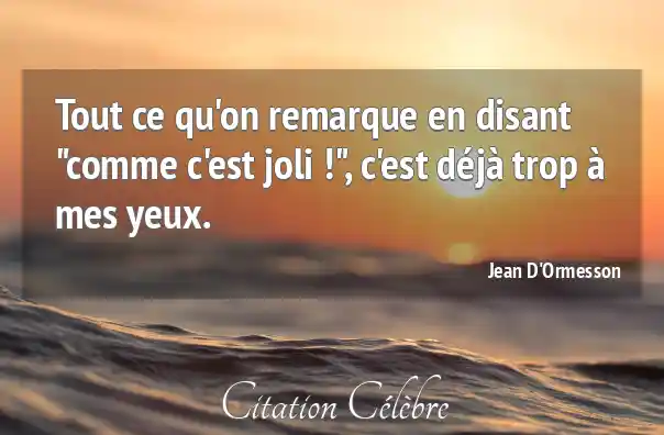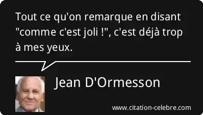 Tout ce qu'on remarque en disant "comme c'est joli !", c'est déjà trop à mes yeux.