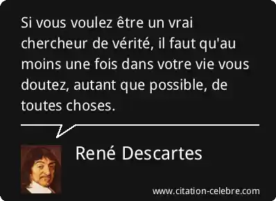 Si vous voulez être un vrai chercheur de vérité, il faut qu'au moins une fois dans votre vie vous doutez, autant que possible, de toutes choses.
