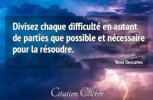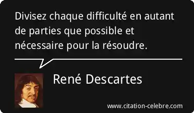 Divisez chaque difficulté en autant de parties que possible et nécessaire pour la résoudre.