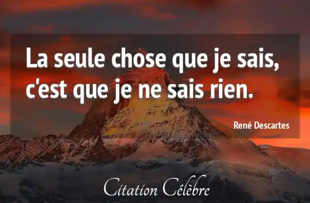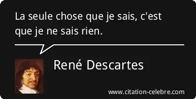 Bien que la citation soit attribuée ici à Descartes, elle est la formule la plus célèbre de la pensée socratique :