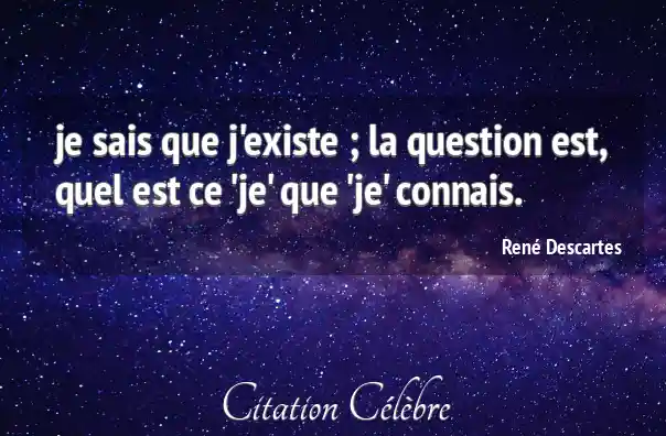 je sais que j'existe ; la question est, quel est ce 'je' que 'je' connais.