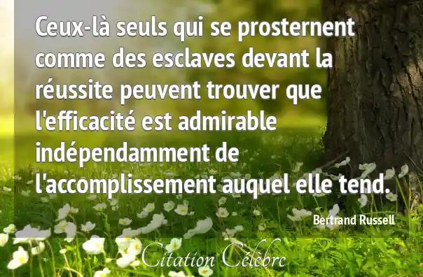 Ceux-là seuls qui se prosternent comme des esclaves devant la réussite peuvent trouver que l'efficacité est admirable indépendamment de l'accomplissement auquel elle tend.