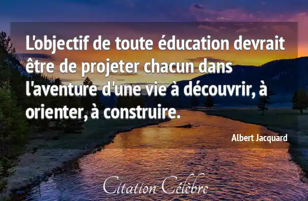 L'objectif de toute éducation devrait être de projeter chacun dans l'aventure d'une vie à découvrir, à orienter, à construire.