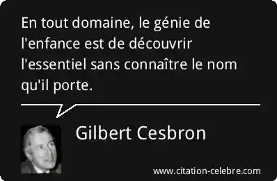 En tout domaine, le génie de l'enfance est de découvrir l'essentiel sans connaître le nom qu'il porte.