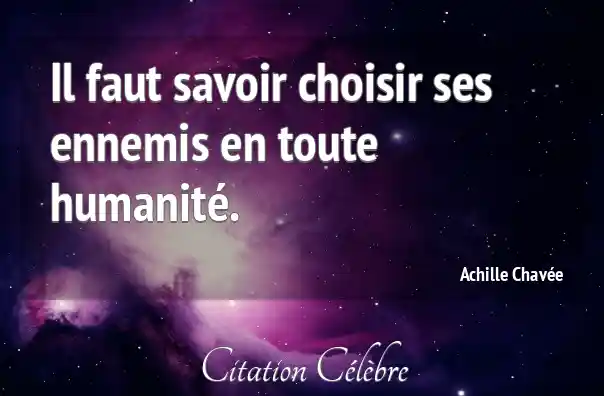 Il faut savoir choisir ses ennemis en toute humanité.
