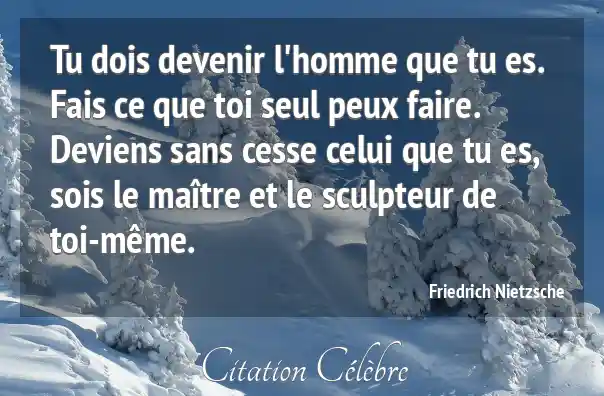 Tu dois devenir l'homme que tu es. Fais ce que toi seul peux faire. Deviens sans cesse celui que tu es, sois le maître et le sculpteur de toi-même.