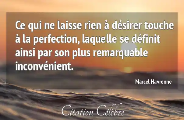 Ce qui ne laisse rien à désirer touche à la perfection, laquelle se définit ainsi par son plus remarquable inconvénient.